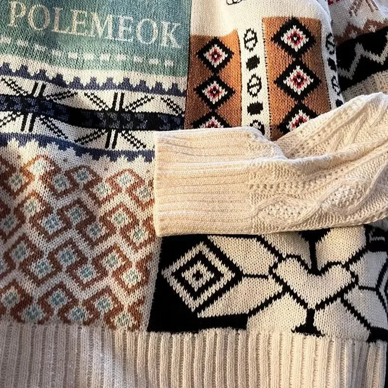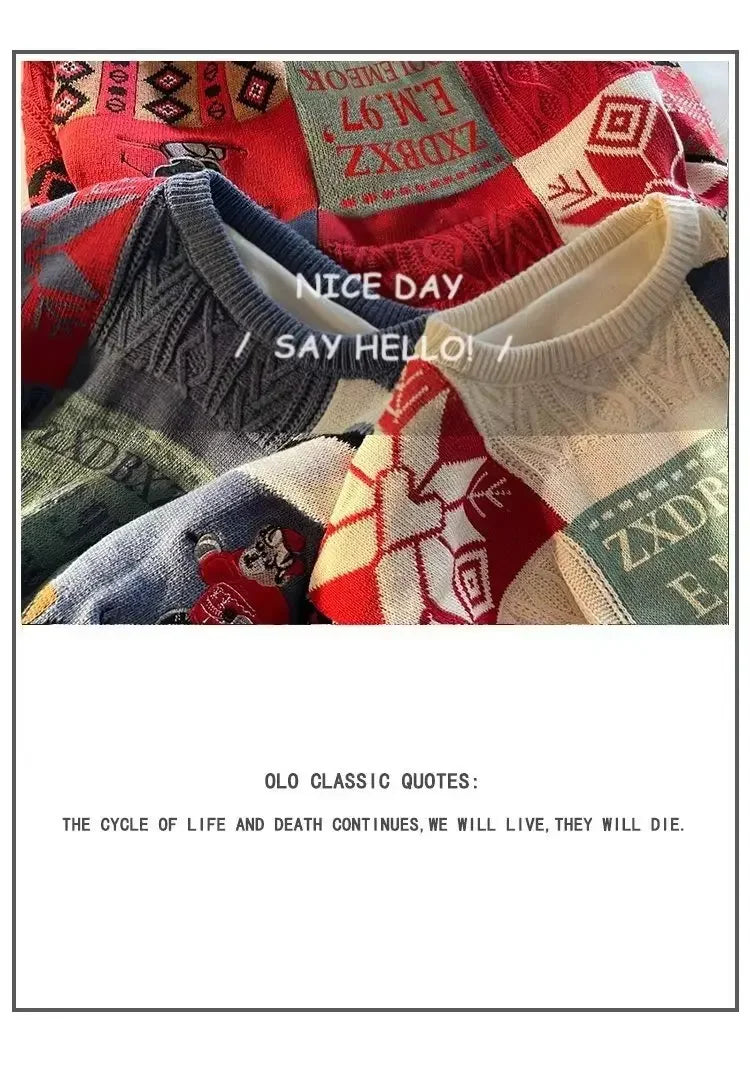 Christmas Sweater Men's Winter Loose-fit Casual Style Knitted Top Jacket American Vintage Fleece-lined Thickened Line Clothes