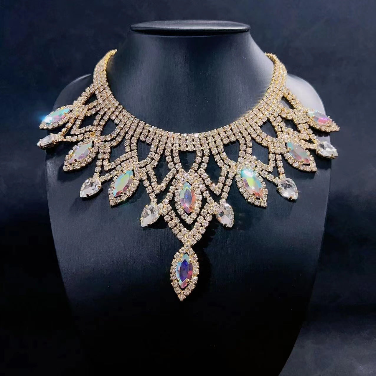 Exaggerated Rhinestone Necklace Personality Luxury Multi-layer Drag Queen Jewels
