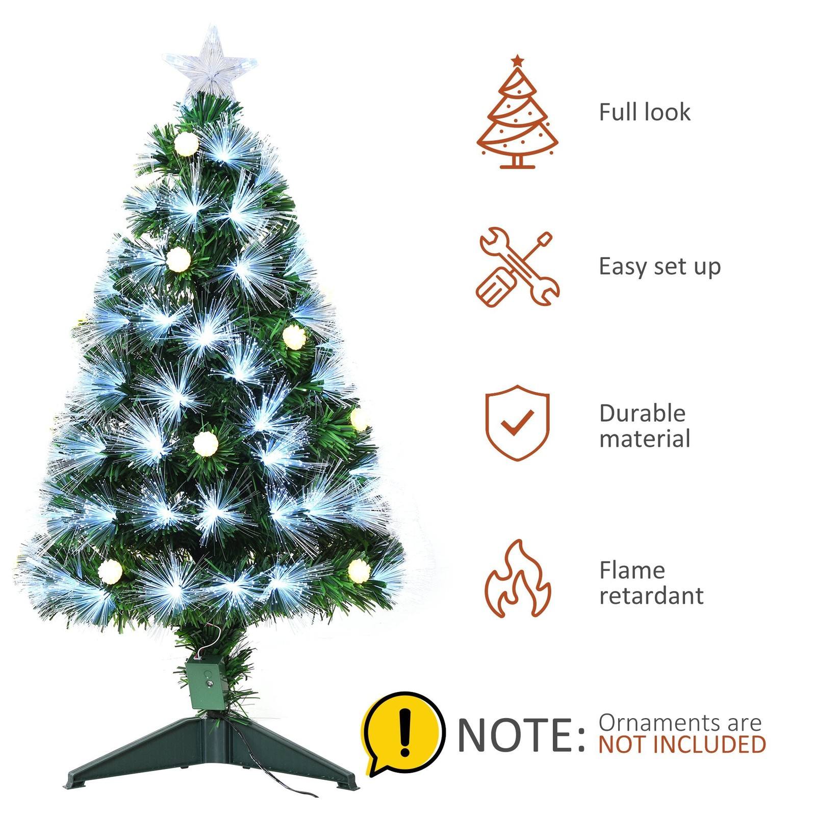 Homcom 3FT White Light Artificial Christmas Tree with 90 LEDs Star Topper Tri-Base Full Bodied Seasonal Decoration