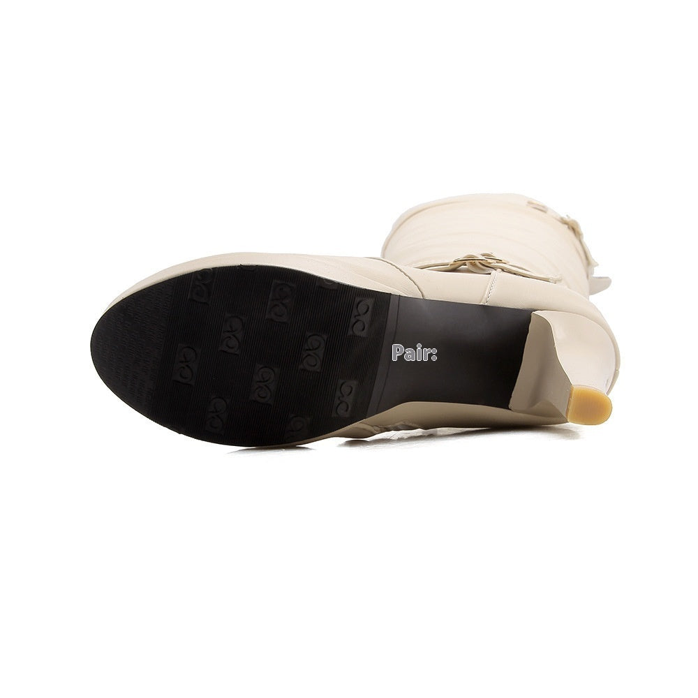 Over The Knee High Heel Almond Toe Waterproof Multi Buckle Platform Boots