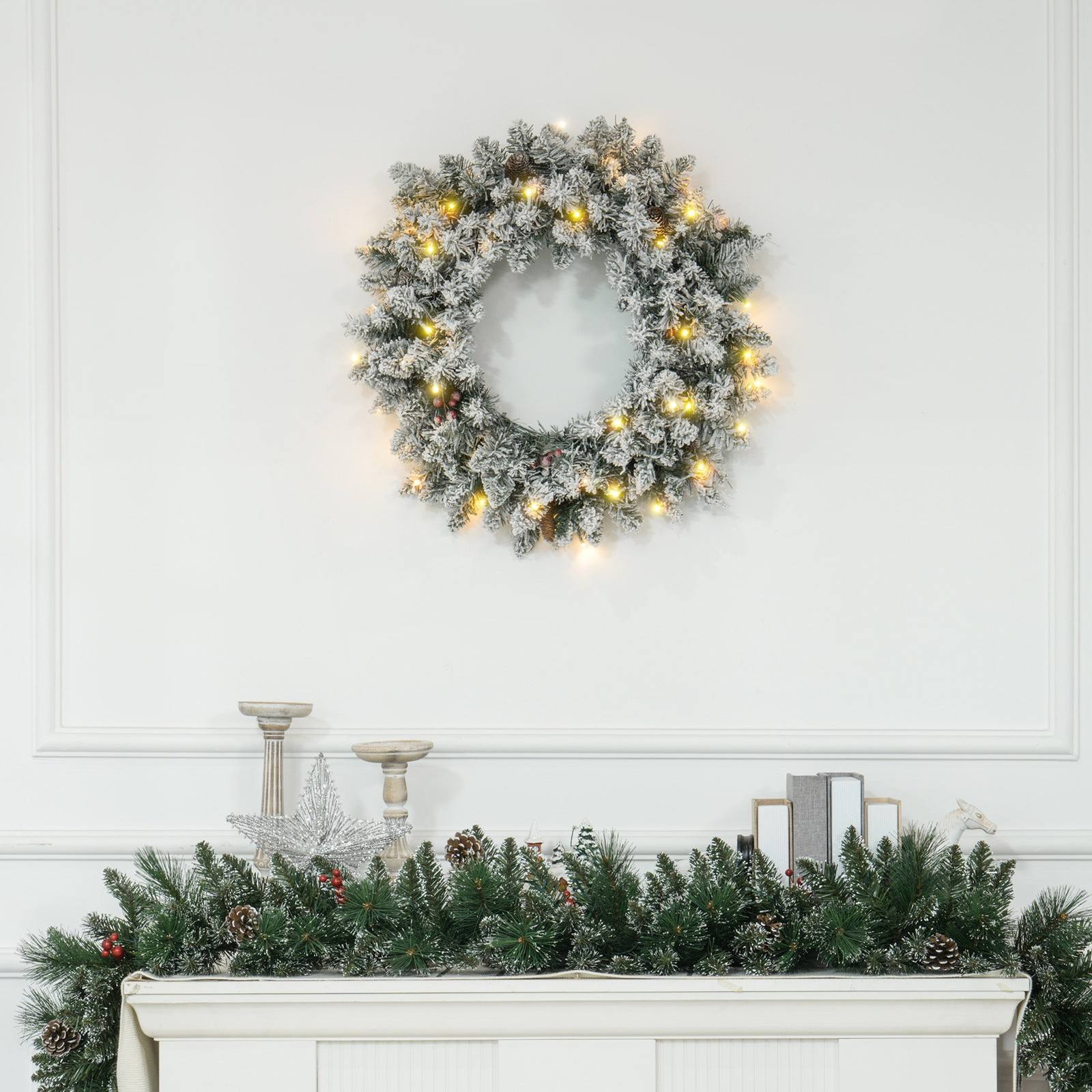This Pinecones & Berries wreath from Homcom is great value for money, with no compromises on quality and great for families who love the christmas season. Adorn your front door with this beautiful Christmas wreath, spreading festive cheer to all who walk past. You get all the beauty and presentation of a real plant without any of the maintenance. Constructed from strong metal and durable plastic materials, it comes adorned with a realistic frosted snow pattern.